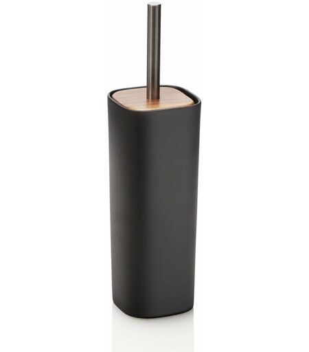Portascopino WOOD • realizzato in ceramica colore nero opaco e legno di noce • asta portascopino in metallo satinato • dimensioni cm. L.10 P.10 H.38,5 ...