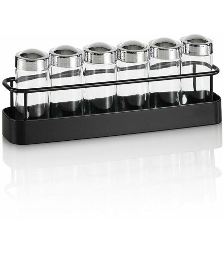 Portaspezie TOON nero • completamente realizzato in metallo nero opaco • nr.6 barattoli in vetro • dimensioni cm. L.28,5 P.5,8 H.7 ...
