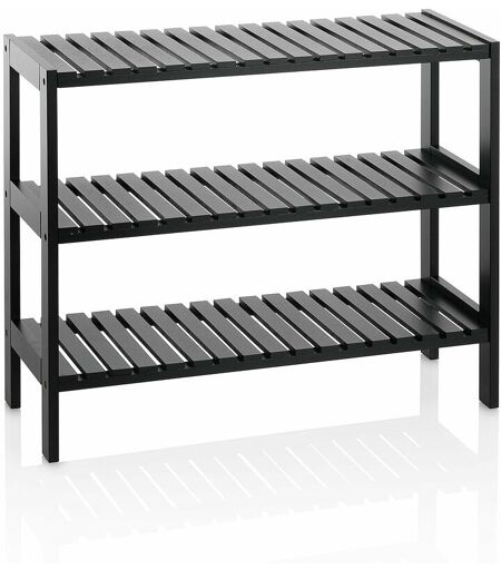 Scaffale/Scarpiera FLOBY nero • completamente realizzato in mdf laccato nero • nr.3 ripiani • dimensioni cm. L.70 P.26 H.58 ...