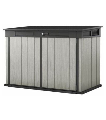KETER GRANDE STORE PORTATTREZZI Il Grande-Store è una soluzione di archiviazione all'avanguardia che combina stile rustico e durata. Realizzato con pareti DUOTECH ™ ultra-resistenti, sopporta qualsiasi condizione atmosferica e manterrà il suo aspetto intatto senza richiedere manutenzione. Le pareti sono anche verniciabili, quindi puoi personalizzare l'unità in modo che sia unica. Questo capannone offre la soluzione di archiviazione perfetta per due 360L / 96 gal. o tre 240 l / 63 gal. bidoni della spazzatura, due biciclette per adulti e due da bambini o attrezzi da giardinaggio. Questa unità di memoria è inoltre dotata di soglia inclinata, sistema di bloccaggio, ventilazione integrata e staffe regolabili per installare un ripiano supplementare. ...