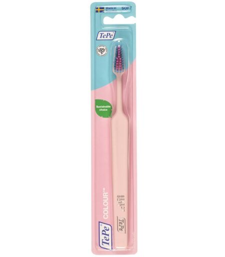 TePe COLOUR - ROSA PASTELLO - Descrizione Spazzolino con setole soft di colore rosa pastello. Testina affusolata per un accesso migiore, setole arrotondate per una pulizia edefficiente. Collo angolabile sotto acqua per un accesso facilitato. Setole bicolori: blu e rosa. - Componenti Manico: polipro… ...
