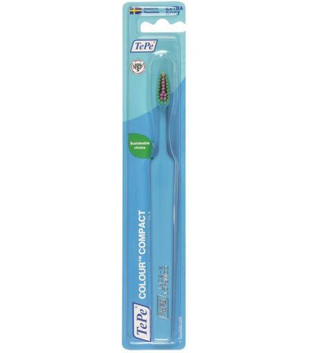 TePe COLOUR COMPACT - TURCHESE - Descrizione Spazzolino con setole extra - soft di colore turchese. Testina affusolata per un accesso migiore, setole arrotondate per una pulizia edefficiente. Collo angolabile sotto acqua per un accesso facilitato. Setole bicolori: verde e rosa. - Componenti Manico:… ...