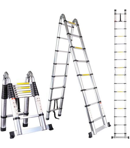 Dimensioni: 5 m (2,5 m + 2,5 m) Scala in alluminio di alta qualità, resistente e antiruggine. Può raggiungere una portata massima di 150 kg. Il fondo della scala è in gomma nera antiscivolo e tra i due gradini adiacenti sono presenti due chiusure che garantiscono la sicurezza e l'affidabilità della scala. Ciascuna sezione è progettata per aprirsi e chiudersi in modo sicuro, senza ferire le dita. Le punte antiscivolo lo tengono saldamente in posizione mentre si lavora, migliorando la sicurezza generale. Il design pieghevole è semplice e flessibile, per cui è facile da spostare e poco ingombrante da riporre. Ogni sezione di chiusura è indipendente dall'altra e può essere regolata ad altezze adeguate alle diverse esigenze. I pioli della scala multiuso in alluminio possono essere avvicinati molto tra loro, rendendoli facili da riporre e da trasportare da un lavoro all'altro. Ideale per un uso polivalente, come la manutenzione di case ed edifici, il lavaggio di finestre, la decorazione di ...