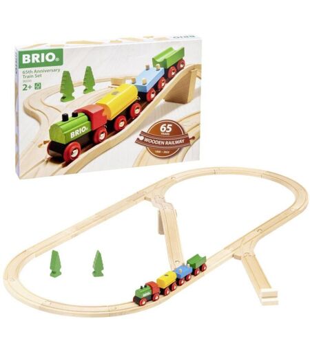 Dettagli tecnici Classe di età da 2 anni BRIO 65 anni ferrovia in legno anniversario-Z Festeggeremo la classica ferrovia giocattolo con il 36036 65 anni di treno in legno per l'anniversario del treno. Il kit di trazione interamente realizzato in legno è ispirato ai prodotti ferroviari BRIO iconici, che sono stati immessi sul mercato nel 1958 per la prima volta. Il kit da 32 pezzi è realizzato in legno di faggio europeo certificato FSC e contiene un classico treno BRIO con 3 vagoni in legno in colori vivaci, un ponte, deviatoi e alberi di legno per una decorazione panoramica del paesaggio.Informazioni su BRIO Classic: La serie ferroviaria BRIO Classic si ispira alla nostra iconica ferrovia giocattolo in legno, che è stata introdotta per la prima volta sul mercato nel 1958. È caratterizzata dai tradizionali elementi di gioco della ferrovia a legno e l'inconfondibile design BRIO in stile scandinavo si adatta bene a qualsiasi casa. Questo robusto giocattolo in legno è in legno di faggio ...