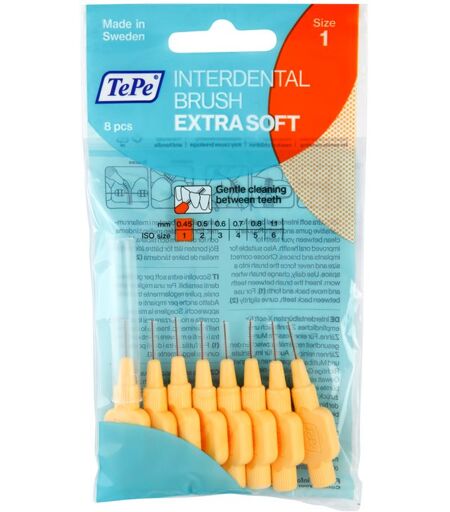 TePe Extra Soft, 8 pz, Scovolini interdentali unisex, Lo scovolino interdentale TePe Extra Soft è parte integrante dell'igiene dentale. Raggiunge i punti meno accessibili e previene la formazione della carie. Caratteristiche: assicura una pulizia perfetta dello spazio interdentale garantisce manegevolezza e facilità d’uso Modo d’uso: Inserire lo scovolino negli spazi interdentali e pulire muovendolo avanti e indietro. ...