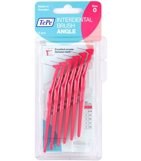 TePe Angle Size 0, 6 pz, Scovolini interdentali unisex, Lo scovolino interdentale TePe Angle Size 0 è parte integrante dell'igiene dentale. Raggiunge i punti meno accessibili e previene la formazione della carie. Caratteristiche: assicura una pulizia perfetta dello spazio interdentale garantisce manegevolezza e facilità d’uso Modo d’uso: Inserire lo scovolino negli spazi interdentali e pulire muovendolo avanti e indietro. ...