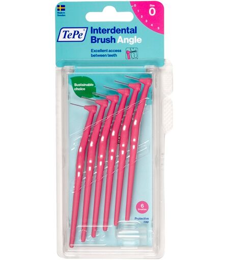 TePe Angle - Scovolino facile da usare sviluppato per un accesso eccellente a tutti gli spazi interdentali. La testina sottile è angolata per raggiungere facilmente gli spazi fra i denti posteriori e le zone palatale e linguale. Facile da maneggiare. Disponibile in sei colori per adattarsi a diver… ...