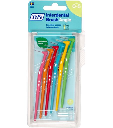 TePe Angle - Desrizione Scovolino facile da usare, sviluppato per un accesso eccellente a tutti gli spazi interdentali. La testina sottile è angolata per raggiungere facilmente gli spazi fra i denti posteriori e le zone palatale e linguale. Facile da maneggiare. Disponibile in sei colori per adatta… ...