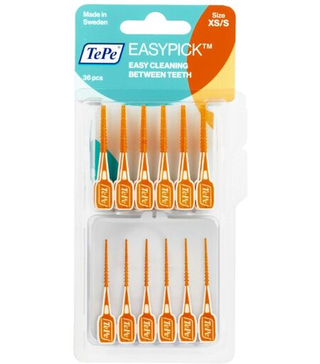 Tepe Easy Pick 36 Stick Dentali Misura XS/S sono dei dispositivi di pulizia in silicone pensati per lo spazio interdentale. Sviluppati da esperti del settore dentale e prodotti in Svezia. ...