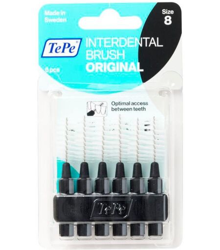 Tepe Prodotti Ig.Orale Srl TePe Scovolino Interdentale Original Nero ISO 8 1,5mm, 6 Scovolini, Pulizia Interdentale Profonda