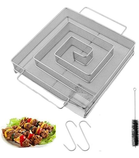 Acciaio inossidabile di alta qualità: il generatore di fumo freddo è realizzato in acciaio inossidabile di alta qualità, che non si rompe, non si pizzica e non arrugginisce facilmente, è resistente al calore ed è più funzionale. La protezione in rete sul bordo previene le lesioni. Design ottimizzato: grazie alla struttura in filo metallico, la forma a spirale concentra i frammenti di fumo, consentendo una combustione lenta senza fiamme e un uso prolungato. Facile da usare: il generatore di fumo ha dimensioni pratiche, è facile da trasportare, è facile da usare e può essere utilizzato con quasi tutti i barbecue. Basta riempire il labirinto con segatura affumicata, accendere la cera da tè e posizionarla nel portacandele finché la polvere non inizia a cambiare colore. Applicazione: bobina di incenso per forni affumicatori, ideale per affumicare a freddo tutti i tipi di alimenti, ecc. Adatto per barbecue a gas o a carbone per ottenere il miglior effetto affumicante. Dotazione: 1 ...