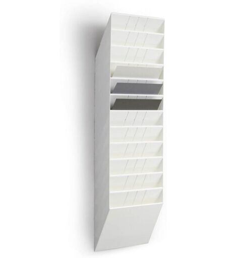 design sobrio e lineare serie Flexiboxx Comparto 23 mm. DURABLE Wand-Prospekthalter-Set FLEXIBOXX 12, A4 Prospektspender im Querformat, erweiterbares Wandsystem, 12 Fächer, Füllhöhe pro Fach: 24 mm, Maße: (B)348 x (T)95 x (H)620 mm, Farbe: weiß (1709781010) ...