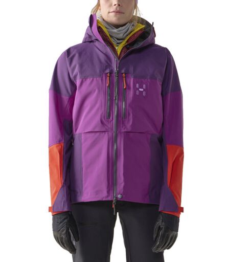 Haglöfs Spitz GTX Pro II W Jacket giacca in GORE-TEX da donna per l' alpinismo estremo, con nuova membrana in laminato GORE- TEX PRO ePE a 3 strati privo di PFAS, impermeabile e resistente al vento, compatibile anche in presenza di imbrago da arrampicata, performante e pratica, dotata di ogni dettaglio per rendere la spedizione sicura e confortevole. tessuto GORE-TEX PRO ePE a 3 strati la rende impermeabile e resistente rinforzi resistenti su spalle e fianchi colletto con morbida fodera in tricot spazzolato lunghe cerniere di ventilazione sotto le ascelle a 2 vie cappuccio compatibile con il casco, regolabile in 3 direzioni, con visiera laminata 1 tasca interna in rete con una tasca aggiuntiva con cerniera 2 tasche con cerniera sotto il petto 1 tasca porta skipass sulla manica polsini regolabili ...