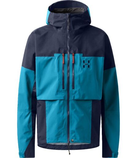 Haglöfs Spitz GTX Pro II M Jacket giacca in GORE-TEX da uomo per l' alpinismo estremo, con nuova membrana in laminato GORE- TEX PRO ePE a 3 strati privo di PFAS, impermeabile e resistente al vento, compatibile anche in presenza di imbrago da arrampicata, performante e pratica, dotata di ogni dettaglio per rendere la spedizione sicura e confortevole. tessuto GORE-TEX PRO ePE a 3 strati la rende impermeabile e resistente rinforzi resistenti su spalle e fianchi colletto con morbida fodera in tricot spazzolato lunghe cerniere di ventilazione sotto le ascelle a 2 vie cappuccio compatibile con il casco, regolabile in 3 direzioni, con visiera laminata 1 tasca interna in rete con una tasca aggiuntiva con cerniera 2 tasche con cerniera sotto il petto 1 tasca porta skipass sulla manica polsini regolabili ...