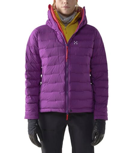 Haglöfs Spitz Down Hood W giacca piumino da donna pensata per attività alpine impegnative come l'alpinismo e l'arrampicata su ghiaccio, elastica, leggera ed estremamente isolante e calda, idrorepellente e antivento, offre la massima libertà di movimento e una protezione efficace da intemperie e freddo. tessuto esterno elastico per una grande libertà di movimento imbottitura in piuma H Down Platinum da 800 CUIN, per garantire un calore affidabile anche in condizioni di umidità costruzione baffle senza cuciture previene i punti freddi cappuccio regolabile, imbottito in piuma, compatibile con casco, con visiera isolata zip centrale anteriore a doppio cursore con patta imbottita in piuma 2 tasche anteriori con zip e una tasca interna con zip polsini elastici nascosti orlo regolabile e imbottito in piuma orlo posteriore più lungo ...