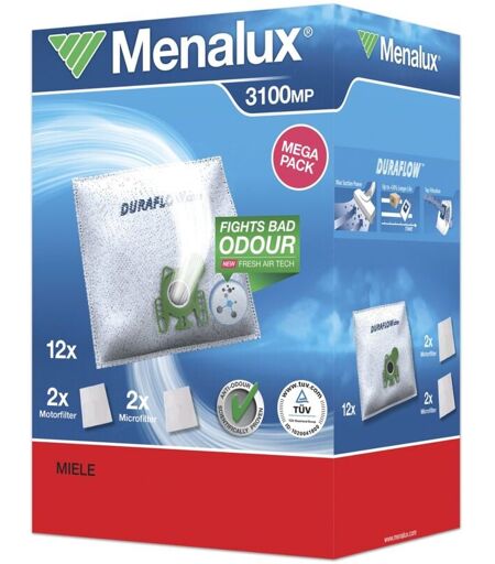 MENALUX 3100 mp - Confezione da 12 sacchetti per aspirapolvere con 2 micro filtri -