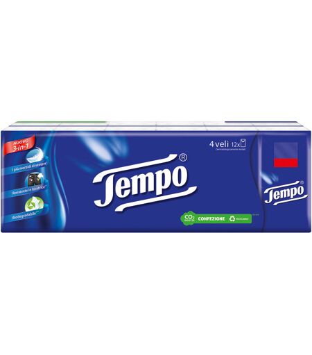 Essity Italy Spa Fazzoletti Tempo - Confezione da 12 Pacchetti da 9 Fazzoletti, Pratici Fazzoletti Monouso