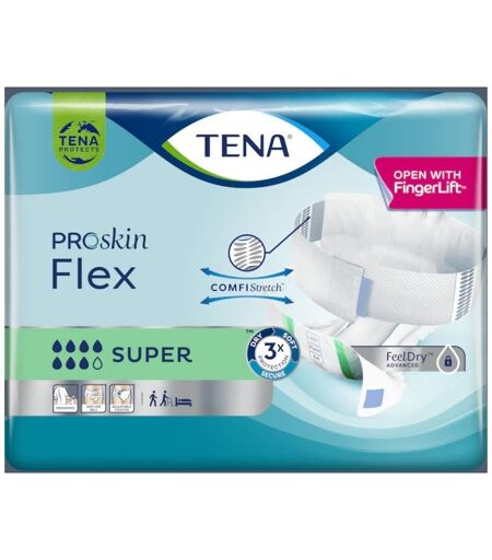 Tena Flex è un ausilio assorbente con sistema di fissaggio integrato a cintura pensato per consentire un cambio veloce. Taglia XL 30 Pezzi ...