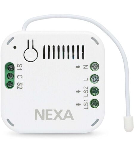Nexa AN-196: Ricevitore integrato 2 canali, on/off Ricevitore piccolo e flessibile che può essere posizionato in una scatola di derivazione o per elettrodomestici. Il ricevitore è dotato di un timer di spegnimento integrato con un ritardo fino a 12 ore per canale, impostabile tramite il parametro Z-Wave. Il ricevitore necessita sia di fase che di neutro. Controllato con Nexa Bridge X o qualsiasi controller Z-Wave. - Z-Wave Plus con supporto per Secure 2 - Timer di spegnimento, fino a 12 ore per canale - Max 1000 W/canale, Resistivo - Controllabile con l'interruttore a parete esistente, anche resiliente Potenza massima per carico: Lampadine & Carico resistivo (230 V): 1000 W/220-240 V Lampade alogene (230 V): 450 W/220-240 V LED e amp; lampade a basso consumo energetico (230 V): 130 W / 220-240 V (40 W x 3) Alimentazione: 220-240 V ~50 Hz Carico massimo: 1000 W/canale Resistivo Consumo energetico: < 1 W (standby) Portata: fino a 30 metri Frequenza radio: 868,42 MHz Temperatura ...