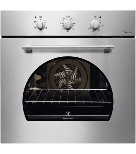 Electrolux FR53X Forno Multifunzione Serie 300. Dimensione del forno: Media, Tipo di forno: Forno elettrico, Capacità interna forno totale: 68 L. Posizionamento dell'apparecchio: Da incasso, Colore del prodotto: Argento, Tipo di controllo: Manopola. Tipo di timer: Meccanico. Classe efficienza energetica: A, Consumo energetico (convenzionale): 0,89 kWh, Consumo energetico (convezione forzata): 0,8 kWh. Tipo di lampada: Alogena, Potenza lampadina: 40 W ...