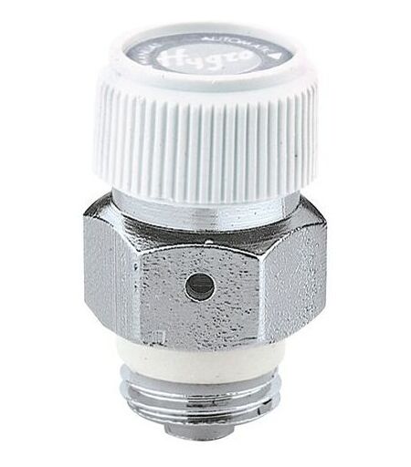 Valvolina automatica igroscopica di sfogo d’aria per radiatori Cromata Volantino in resina bianco Filetto a tenuta PTFE Pmax d’esercizio: 10 bar Tmax d’esercizio: 100°C ...