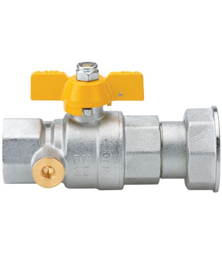 VALVOLA A SFERA PER GAS. CON FARFALLA IN ALLUMINIO GIALLA. CON PRESA DI PRE 3/4"X11/4" ...