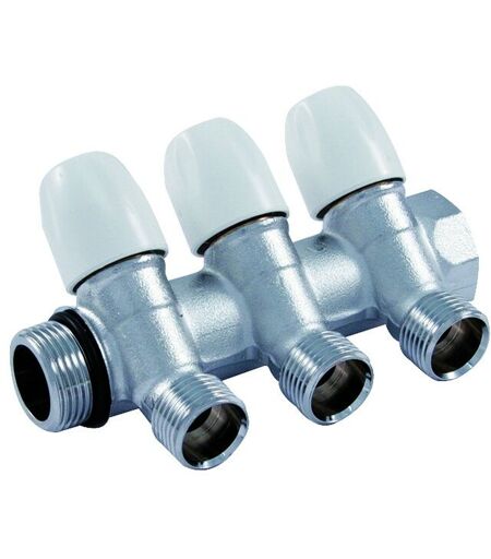TIEMME Collettore lineare in ottone cromato modello maxima con rubinetto d'arresto 1'X1/2' 4 vie raccorderie spa