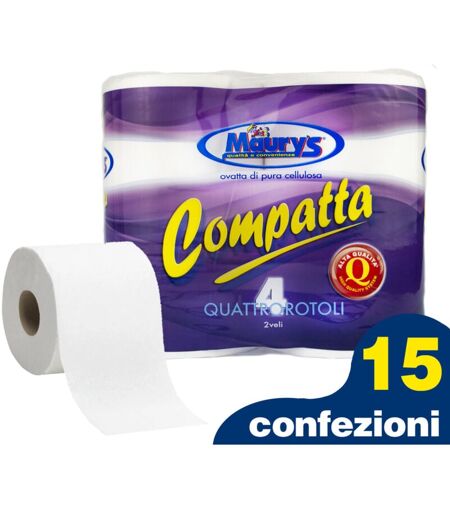 MAURY'S Kit 15 Carta Igienica 4 Rotoli 2 Veli Compatta 780gr Alta Qualità