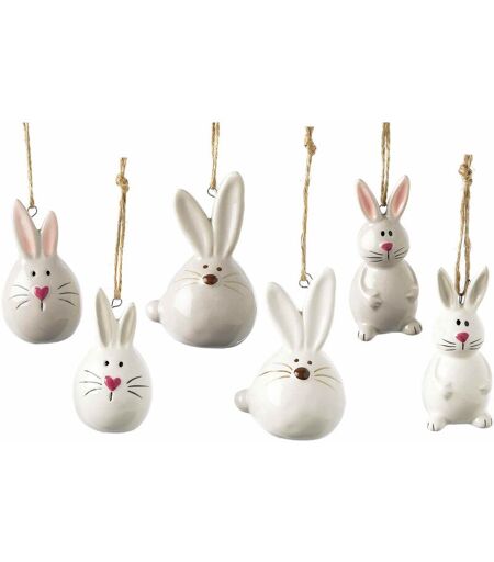GRUPPO MARUCCIA - Set 12 decorazioni Pasquali da appendere a forma di coniglietti in ceramica