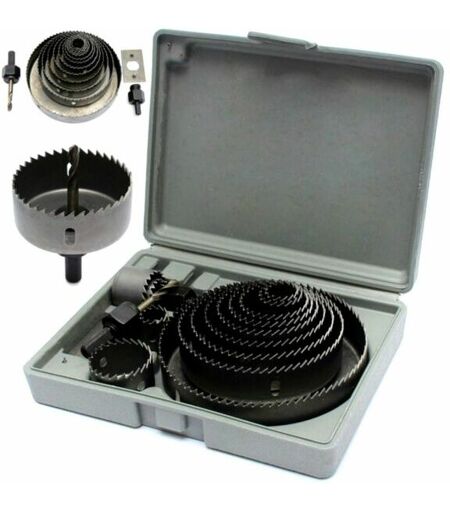 SET 16 PZ FRESE PER LEGNO CON SUPPORTO E 2 ATTACCHI Set frese 16 pezzi nuove In acciaio rigido Ideali per bucare metallo,legno ,plastica o materiali simili. Le misure sono: 19,22,28,32,38,44,51,64,76,89,102,127mm oltre a 2 attacchi, supporto per le frese più grandi e chiavino, il tutto racchiuso in una comoda valigetta. ...