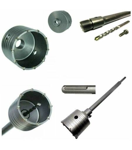 FRESA A TAZZA 80mm CAROTATRICE CON ASTA SDS MAX 600mm CALCESTRUZZO CEMENTO N/B NO CEMENTO ARMATO FRESA A TAZZA 80mm CAROTATRICE CON ASTA SDS MAX 600mm PER CALCESTRUZZO E CEMENTO ASTA PER FRESA A TAZZA CAROTATRICE CON INNESTO SDS-MAX LUNGHEZZA 600mm Completo di Fresa a tazza per muro, cemento, pietra, No cemento armato Filettatura attacco asta 20/22mm OTTIMO X GLI INSTALLATORI ARIA CONDIZIONATA, ELETTRICISTA, IN QUANTO CON QUESTA FRESA E MOLTO SEMPLICE FORARE QUALSIASI TIPO DI MURO X IL PASSAGGIO DEI CAVI E TUBI DALL’INTERNO ALL’ESTERNO NELLA CONFEZIONE TROVERETE 1 ASTA DA 60 CM ATTACCO SDS MAX 1 FRESA CAROTATRICE DA 80 MM ...