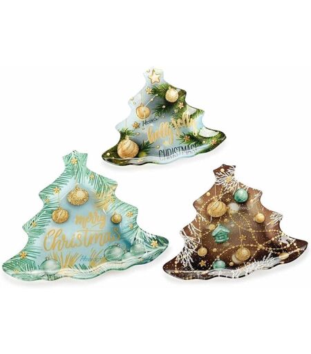 GRUPPO MARUCCIA Set 6 Piatti Natalizi a Forma di Albero di Natale in Vetro Decorato Idea Regalo Natale