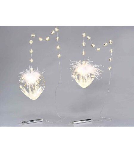 GRUPPO MARUCCIA - Decorazioni Natalizie da Appendere Cuori in Vetro con Luci Led e Piume Set da 2 Decorazioni di Natale Luminose per Casa Vetrine e