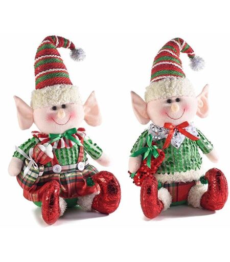 GRUPPO MARUCCIA - Elfi Natalizi in Stoffa Imbottita Set 2 pupazzi Natalizi Decorativi Addobbi di Natale per Casa, Vetrine e Negozi