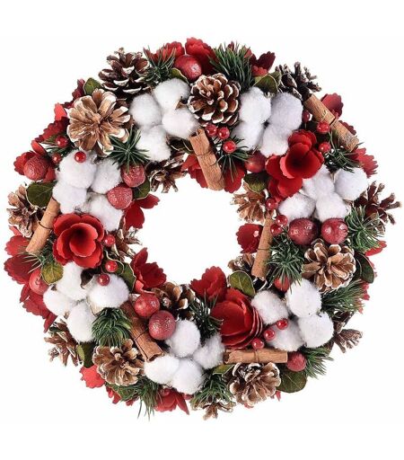 Elegante ghirlanda Natalizia da porta decorata nei minimi dettagli con legnetti, bacche, fiori e pigne I dettagli in cotone donano un tocco di eleganza a questa decorazione Natalizia da porta Misure in centimetri: Diametro esterno 33 centimetri Diametro interno 8 centimetri ...