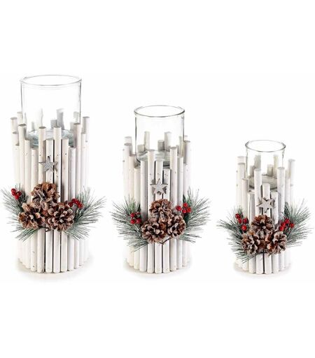 Centrotavola Natalizi con vasi portacandela, decorati con legnetti bianchi, rametti di pino e pigne In confezione da 3 vasi, assortiti in 3 diverse misure, da usare per addobbare la casa in occasione delle festività o come idea regalo per Natale Dimensioni in centimetri: Vaso grande base 20 x profondità 15 x altezza 38, bicchiere portacandela diametro 10,5 x altezza 11 Vaso medio base 17 x profondità 13,5 x altezza 32,5, bicchiere portacandela diametro 8,5 x altezza 9 Vaso piccolo base 11,5 x profondità 15 x altezza 25,5, bicchiere portacandela diametro 6,5 x altezza 7 ...