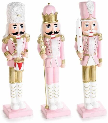 GRUPPO MARUCCIA - Schiaccianoci Natalizi in Resina Rosa e Oro Statuine Natalizie Decorative per la Casa- Idea Regalo Set da 3