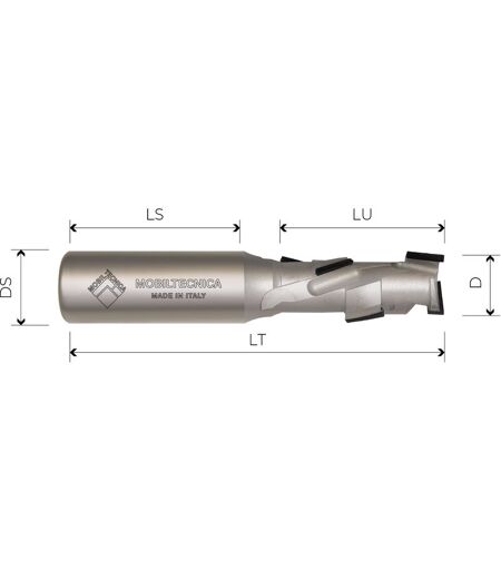 MOBILTECNICA FRESA ELICOIDALE IN DIAMANTE Z1+1 CORPO IN ACCIAIO PCD H4,5 mm - .1D20 LU 27 DS20 LT85 Z(1+1)(3DP+1HW) AX20° DX H4,5