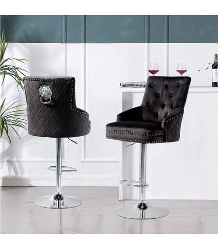 UNHO Taburete de Bar Industrial Vintage - Silla de Bar de Metal Cromado y Terciopelo Asiento de Cocina Giratorio de Altura Ajustable - 1 Silla Negra