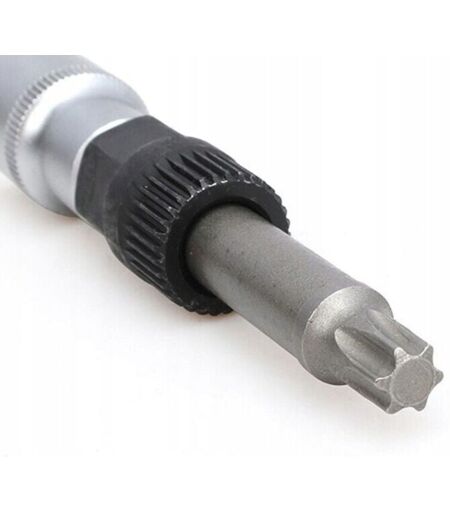 CHIAVE PER ALTERNATORE BOSCH T50x113mm GOLF PASSAT Questa offerta include una chiave per la rimozione/installazione di alternatori (tipo Bosch) con frizione. Questa chiave consente di allentare contemporaneamente il bullone di montaggio della puleggia e di tenere ferma la puleggia della frizione per rimuovere la cinghia trapezoidale. Utilizzato, tra gli altri, per: VW Golf, Vento, Passat, Audi A3, Volvo T50x113mm L x 33T x 17mm Chiave a bussola scanalata T50 Chiave per alternatore a 33 denti 1/2" Presa ...