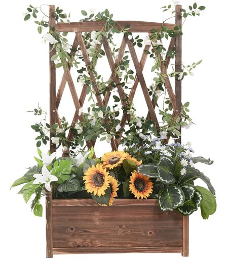 UNHO Fioriera da Esterno in Legno con Spalliera a Griglia per Rampicanti Rose Alta 115 cm
