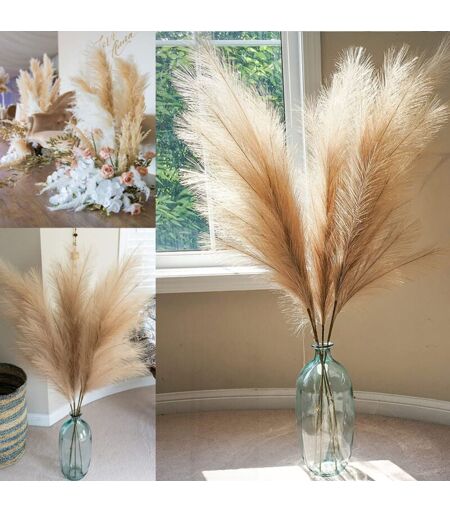 Las grandes pampas artificiales están hechas de seda e hilo de alta calidad. El mango es de alambre (envuelto en papel). Son muy realistas al tacto y se ven súper naturales. Esta hierba decorativa resiste la prueba del tiempo, no se derrama, te permite sentir la atmósfera del otoño sin importar la época del año. Sin caspa. A diferencia de la hierba de pampa seca, flores o plantas, la hierba de pampa artificial no tiene el problema de disiparse o airearse antes de su uso, también es esponjosa y fácil de mantener. La hierba de pampa artificialmente alta se parece a la hierba de pampa seca, esponjosa y elegante, perfecta para amueblar espacios habitables, también se puede usar con hierba de cola de conejo grande o pequeña, plumas de avestruz, otras flores artificiales blancas y rosadas o naturales o flores y plantas secas. La pampa artificial artificial parece una planta primaveral esponjosa con flores secas. Es perfecto para decoraciones de bodas bohemias, bodas en la playa y decoración ...