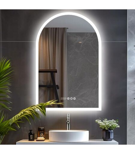 LUVODI - Specchio Bagno con Led Luce Retroilluminato Arco Specchio Smart Digitale Bagno con Orologio 90x60cm