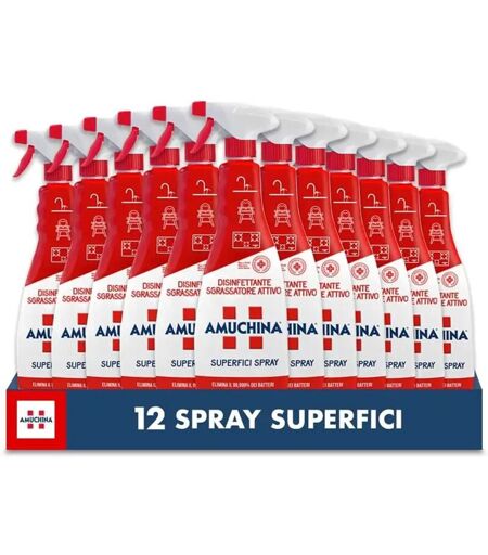 REPLOOD 12x Amuchina Superfici Spray Disinfettante Sgrassatore Attivo 12 Flaconi x 750ml