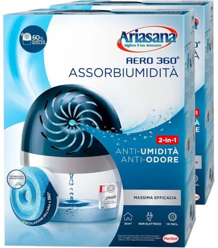 Ariasana Aero 360° è un deumidificatore non elettrico progettato per mantenere i tuoi ambienti freschi, asciutti e privi di cattivi odori. Con la sua tecnologia 2in1, questo dispositivo non solo assorbe l'umidità in eccesso, ma neutralizza anche i cattivi odori, creando un'aria più salubre e piacevole. Realizzato in plastica riciclata, è una scelta ecologica che rispetta l'ambiente, offrendo al contempo prestazioni efficaci. Il deumidificatore Ariasana è particolarmente utile per ambienti soggetti ad alta umidità, come bagni, cucine, cantine o armadi. Grazie alla sua capacità di prevenire la formazione di condensa e muffa, aiuta a proteggere muri, mobili e tessuti da danni causati dall'umidità. Inoltre, ogni deumidificatore viene fornito con una ricarica Tab da 450g e include 2 deumidificatori, per garantire una protezione duratura in più stanze. Facile da utilizzare, non richiede alimentazione elettrica, il che lo rende perfetto per chi cerca una soluzione pratico-sostenibile senza ...