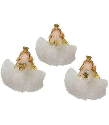 COSEDACASA - Angelo fatina bianco oro pelliccia addobbi decorazioni per albero di natale 6pz con trecce vestito organza h 13 cm