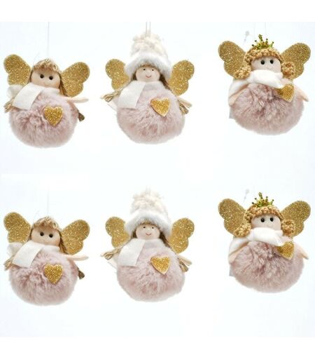 COSEDACASA - Angelo fatina rosa pelliccia addobbi decorazioni per albero di natale 6pz casa