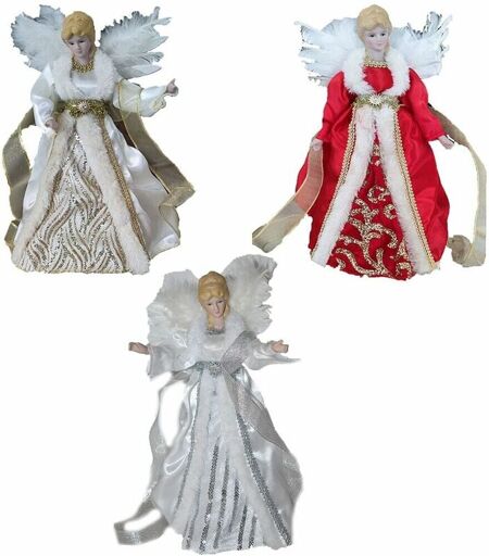 COSEDACASA - Angelo custode con pelliccia oro bianco rosso per puntale Albero di Natale h 27 Decorazioni natalizie addobbi in tessuto