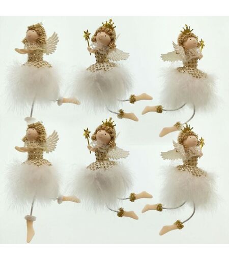 COSEDACASA - Angelo fatina bianco oro pelliccia addobbi decorazioni per albero di natale 6pz casa