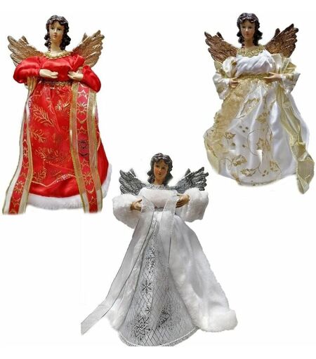 COSEDACASA - Angelo puntale con pelliccia bianco rosso oro punta per Albero di Natale addobbi Decorazioni H30 cm natalizie casa vetrine